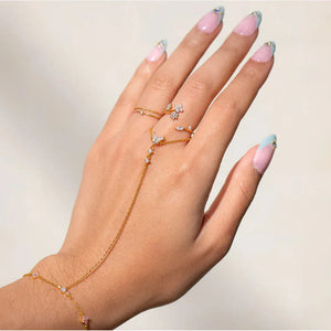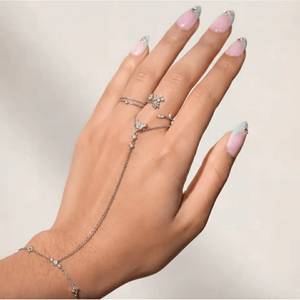 Our Butterfly Hand Jewelry captures the essence of freedom, elegance, and feminine charm. Designed to connect a delicate bracelet to a matching ring with a fine chain, this enchanting piece features a beautifully detailed butterfly centerpiece resting gently across the hand.