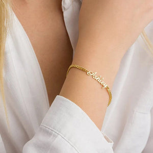 Introducing our Chain Bracelet with Name, a stunning piece of personalized jewelry that allows you to carry your identity with style. Crafted with exquisite attention to detail, this bracelet features a delicate chain adorned with a customizable nameplate, making it a truly unique and meaningful accessory. Whether it's your own name or that of a loved one, this chain bracelet is a beautiful way to celebrate individuality.