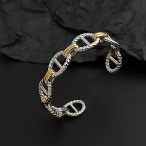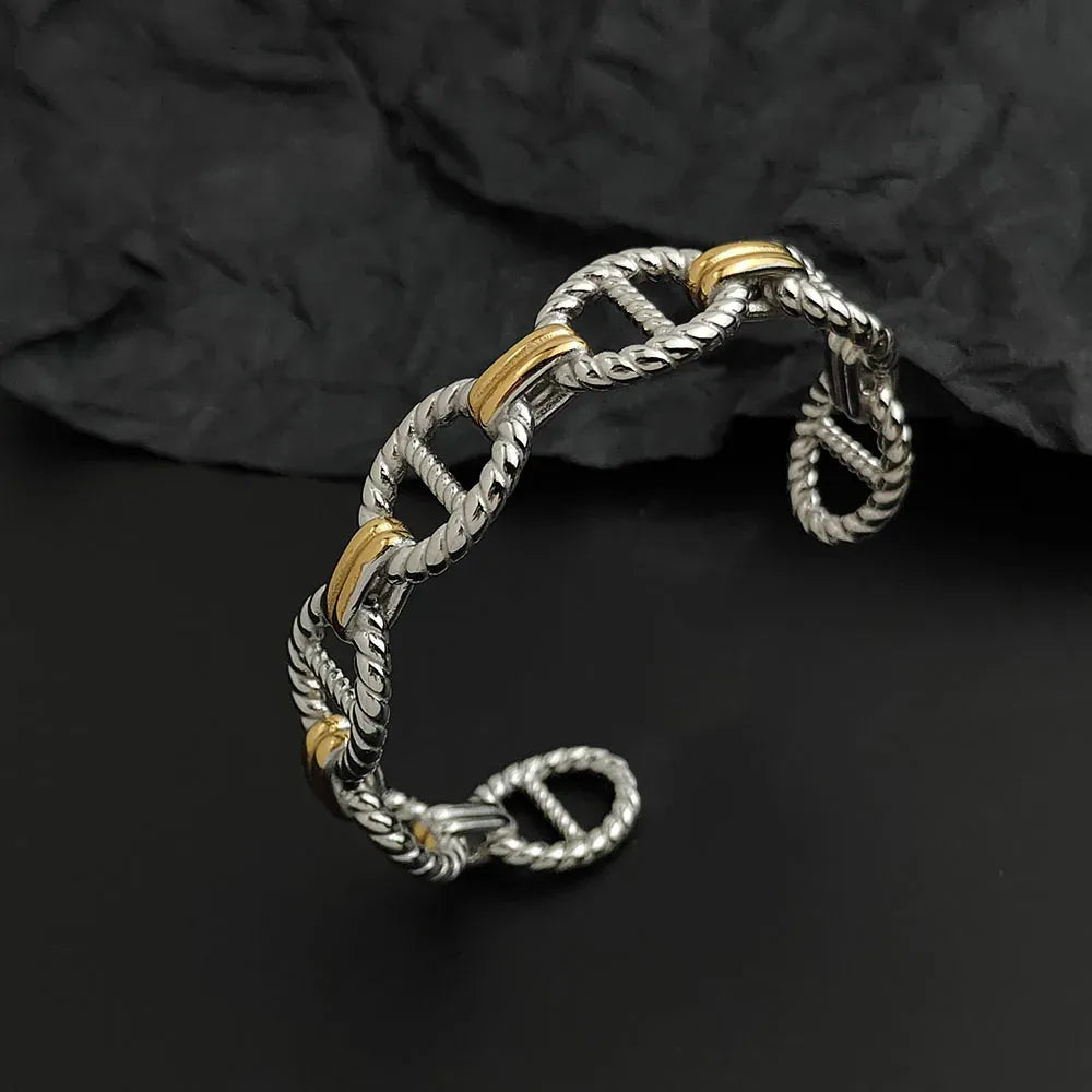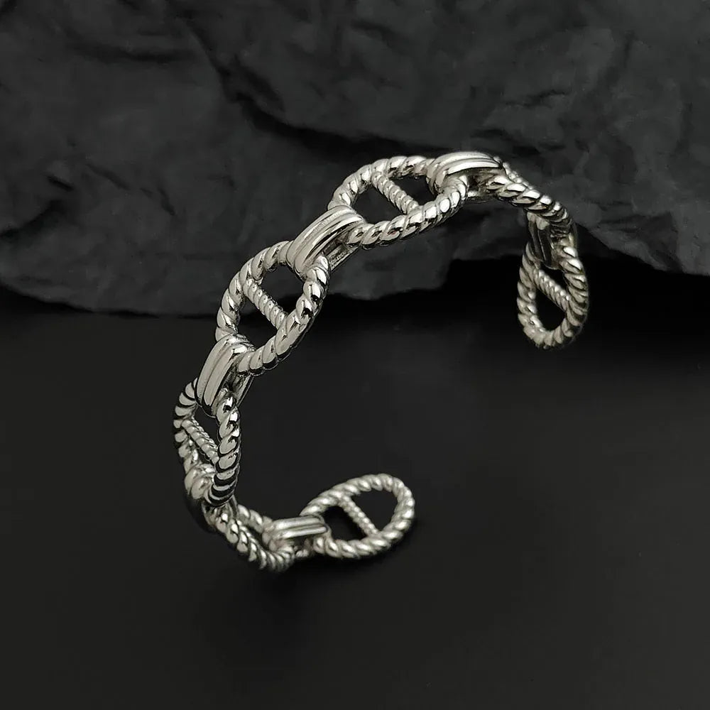 Our Coffee Bean Link Bangle blends sculptural elegance with modern charm, offering a refined accessory that speaks of confidence, style, and subtle luxury. Its iconic coffee-bean-inspired links wrap gracefully around the wrist, creating a piece that feels both meaningful and effortlessly fashionable. A piece that feels luxurious, lightweight, and beautifully balanced on the wrist.