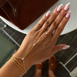 Our Crystal Double Hand Chain is designed for those who love elevated elegance with extra brilliance. Featuring a double-chain base at the wrist and a delicate connection to a matching ring, this stunning hand jewelry creates a layered, luxurious effect that instantly stands out.