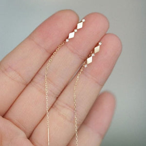 Our Earrings with Chain Through Ear are the epitome of contemporary chic. The chains elegantly thread through the earlobe, creating a striking visual effect that instantly elevates any ensemble. Whether you're dressing up for a night out or adding a touch of edge to your everyday look, these chain earrings are sure to make a statement.