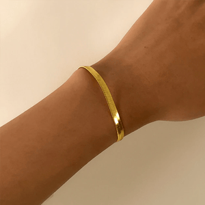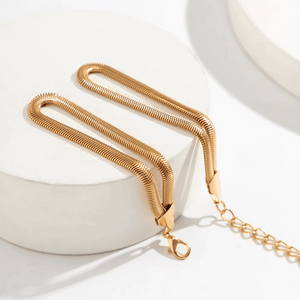 Immerse yourself in the world of timeless elegance with our Gold Snake Chain Bracelet. This exquisite piece is not just an accessory; it's a statement of classic sophistication and modern luxury. Crafted for those who have an eye for elegance and a taste for timeless beauty, this link bracelet combines the sleekness of the snake chain with the enduring allure of gold, making it an essential addition to any jewelry collection.
