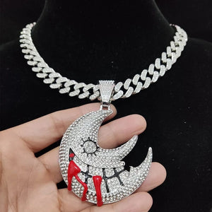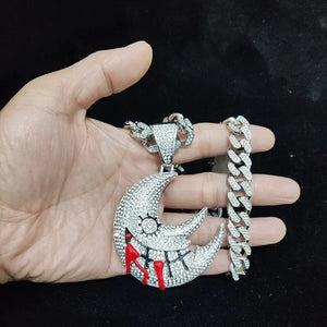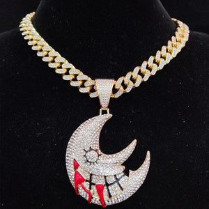 Elevate your style with our Hip Hop Moon Necklace, a unique piece that combines bold design with mystical appeal. This eye-catching necklace features a meticulously crafted moon pendant, adorned with sparkling stones, creating a standout accessory perfect for any outfit. Whether you're hitting the stage, attending a party, or adding a touch of luxury to your everyday look, this necklace is sure to capture attention and showcase your unique style.