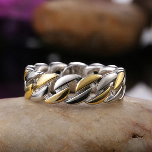 Enhance your style with our Men's Cuban Link Ring, a bold accessory that exudes confidence and sophistication. This gold ring features the iconic Cuban link design, known for its strength and intricate detail. Perfect for the modern man who appreciates unique and stylish jewelry, this ring adds a touch of luxury to any outfit, whether casual or formal.