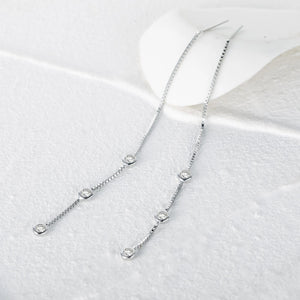 Enhance your jewelry collection with our stunning Pull-Through Earrings. These chain earrings are a perfect blend of elegance and modernity, adding a touch of sophistication to any ensemble. Designed to effortlessly thread through your earlobe, they create a unique and eye-catching look that will elevate your style to new heights. Whether you're dressing up for a special occasion or adding a touch of glamour to your everyday look, these threader earrings are the perfect choice for any outfit.