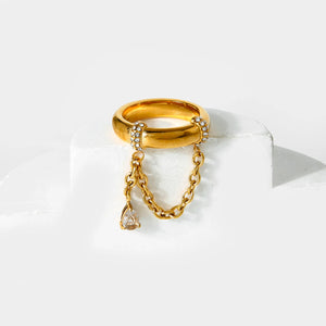 Our Ring with Gold Chain blends delicate detail with contemporary elegance. Its fine chain-link design adds texture and soft movement, catching the light in the most subtle, luxurious way. Minimal yet distinctive, this ring brings effortless polish to both casual and dressed-up looks.