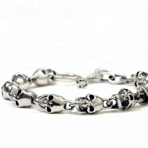 Elevate your accessory game with our Silver Skull Bracelets for Men. These chain bracelets feature intricately designed skull motifs crafted from premium silver, creating a striking blend of boldness and sophistication. Ideal for men who want to make a statement, these chain bracelets for men add a touch of edgy elegance to any outfit. Whether you're dressing up for a formal event or adding a unique accent to your everyday look, these bracelets are the ultimate symbol of individuality and style.