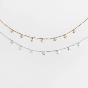 Illuminate your style with our Star Choker Necklace, a captivating accessory that brings the wonder of the night sky to your wardrobe. This enchanting necklace features delicate stars scattered along a fine chain, designed to twinkle with every movement, mirroring the celestial beauty above. Whether you're dressing up for a night out or adding a whimsical touch to your everyday look, this choker is a perfect way to showcase your love for the cosmos and add a touch of elegance to any outfit.
