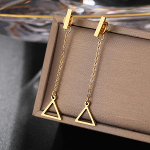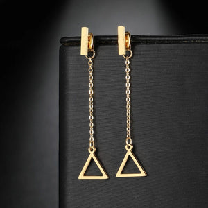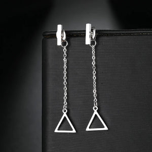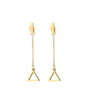 Introducing our Triangle Dangle Earrings, a perfect blend of geometric elegance and contemporary design. These stylish dangle earrings feature a sleek triangle shape that dangles gracefully, adding a modern and sophisticated touch to any outfit. Ideal for those who appreciate the simplicity of geometric shapes with a chic twist, they're designed to catch the eye and enhance your look with their minimalist yet striking appeal.